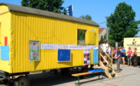 Dieser Bauwagen steht reihum Kindergärten, Schulen und Initiativen als Ausstellungsraum zur Verfügung. Bisher wurden